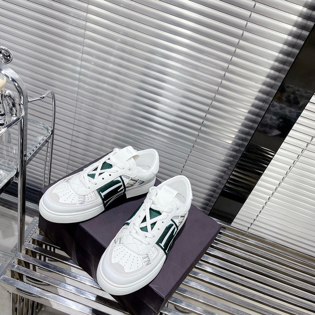 Valenti Low Top VL7N White Grey Mix Dark Green Calfskin And Canvas 993734