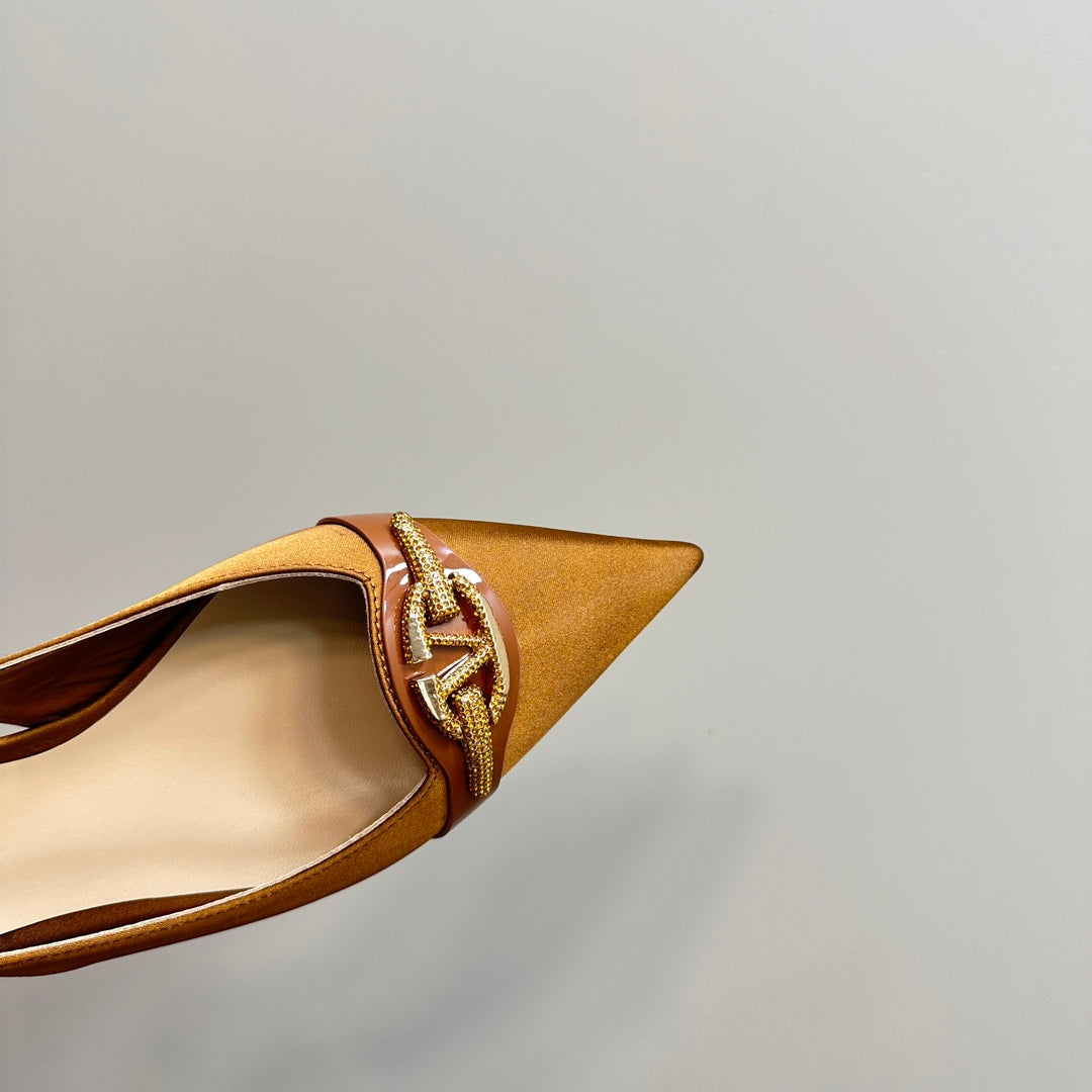 Valentino Slingback Pump In Brown Mix Beige Lambskin 999001