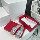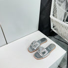 Vlogo Cut-Out Silver Calfskin Slide Sandal