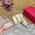 VLogo Raffia-Trimmed Leather Slides In Rose Pink Mix Beige Sedge Weaving Yarn And Lambskin 102809
