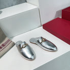 VLogo Signature Silver Leather mules