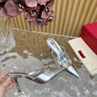 Vlogo Signature with Crystals Cut-Out Slingback Pump 70 Silver Calfskin