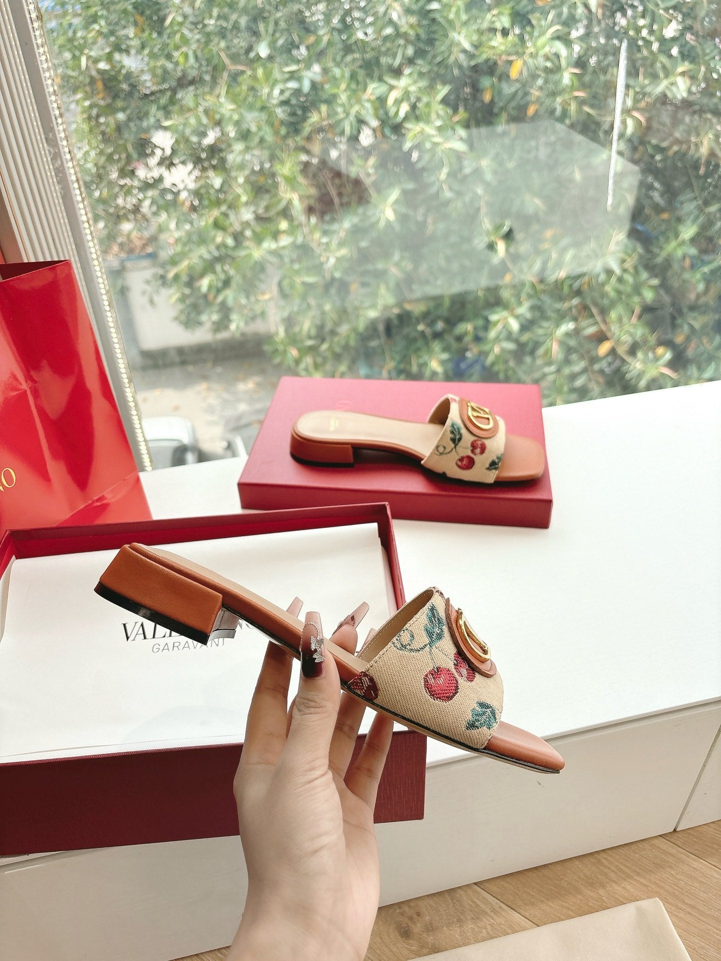 VT 2025 Cherryfic Leather Trimmed Slides Orange Sheepskin 286494