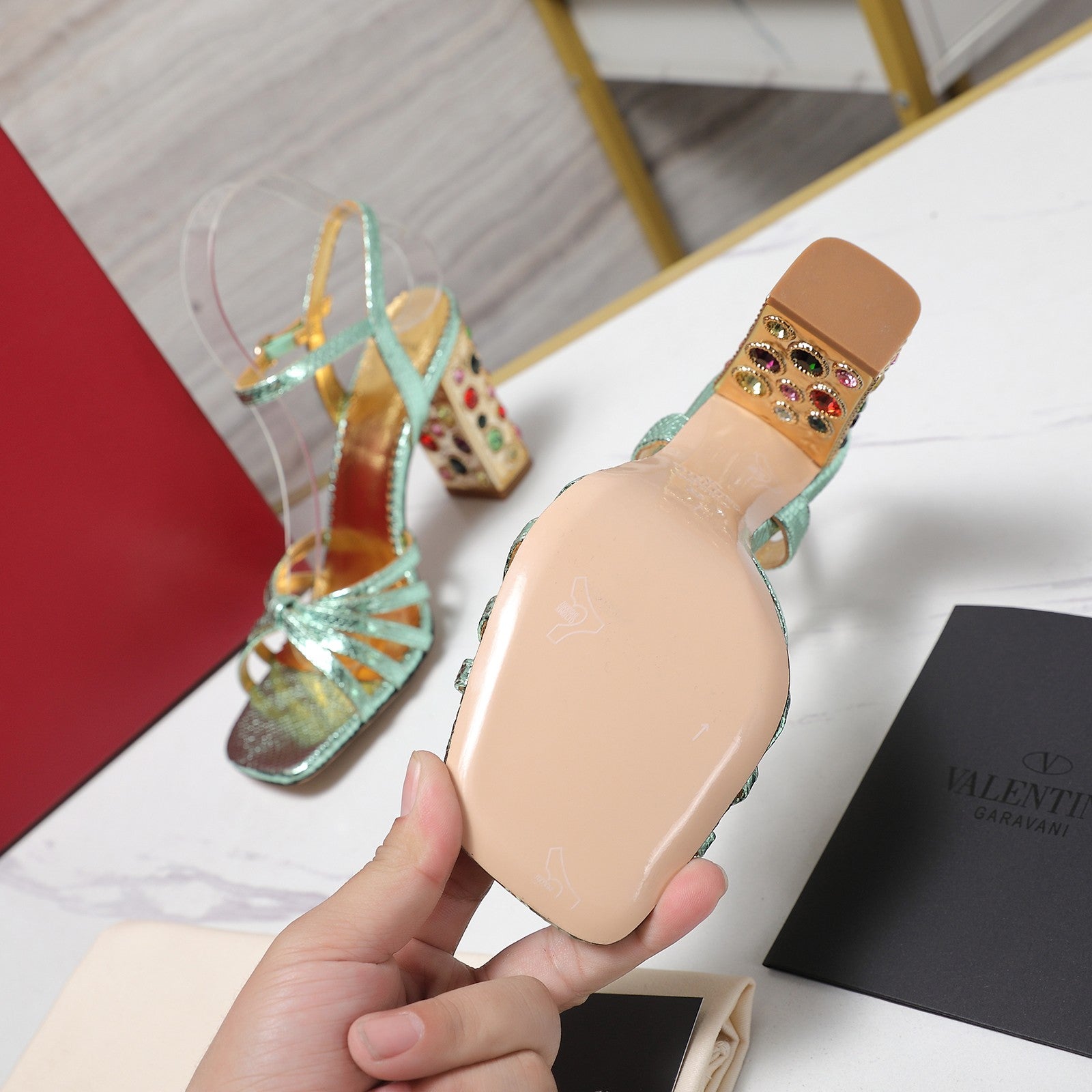 VT 2025 Diamond Heel Sandals Green Cowhide 289514