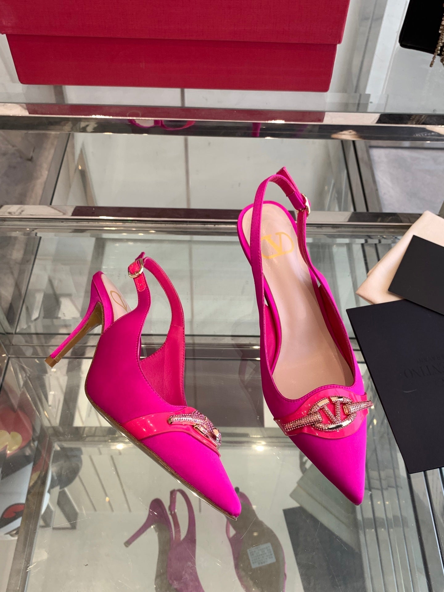 VT 25 High Heels Slingbacks Fuchsia Pink Cowhide 292353