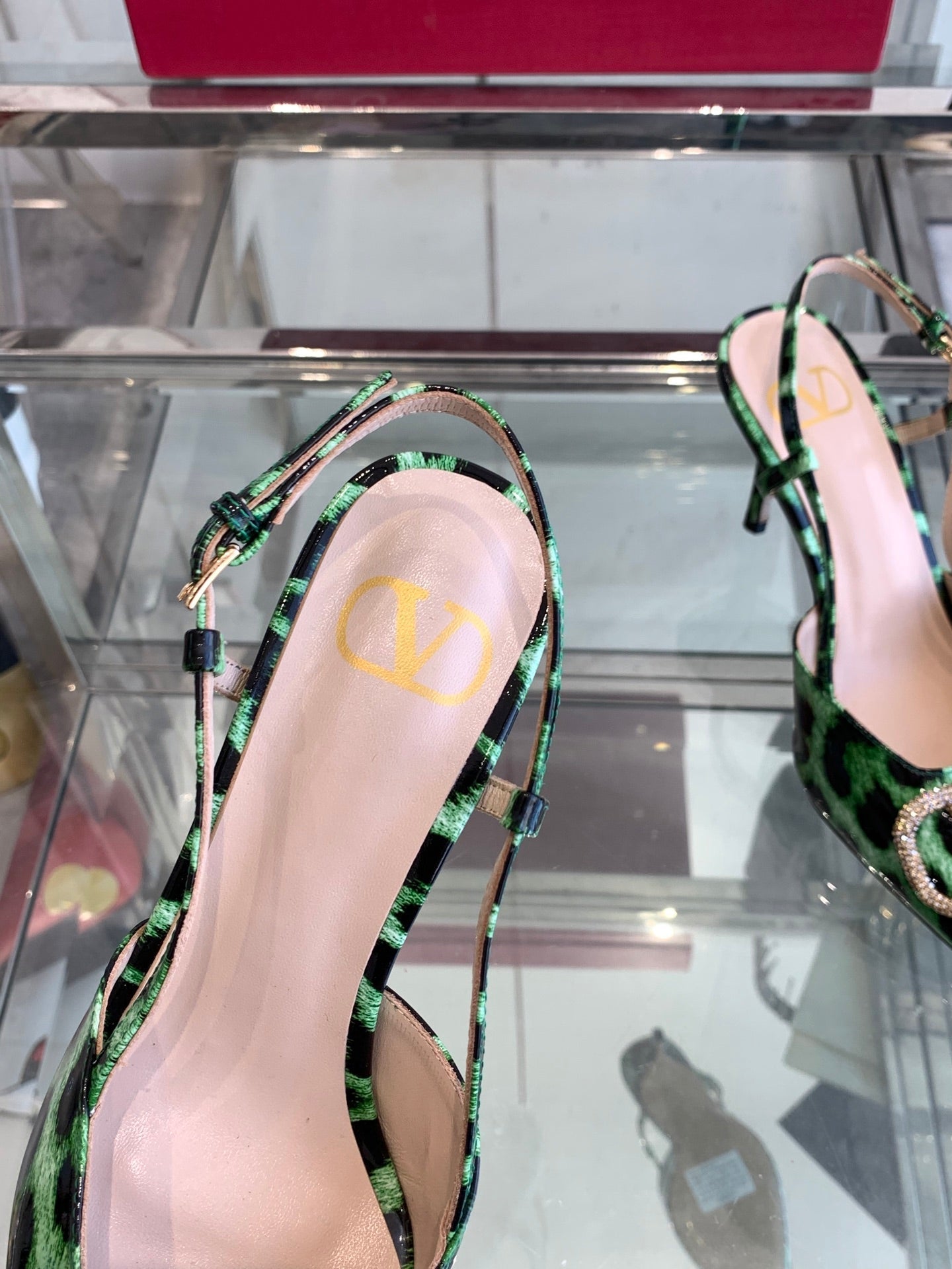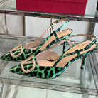 VT 25 High Heels Slingbacks Green Leopard Cowhide 292347