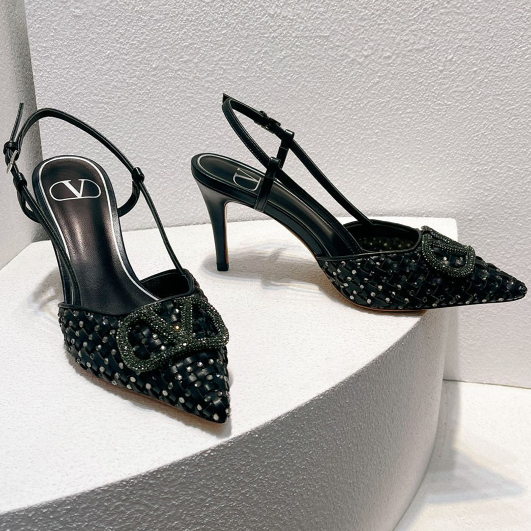 VT High Heeled Slingbacks Black Sheepskin 292799