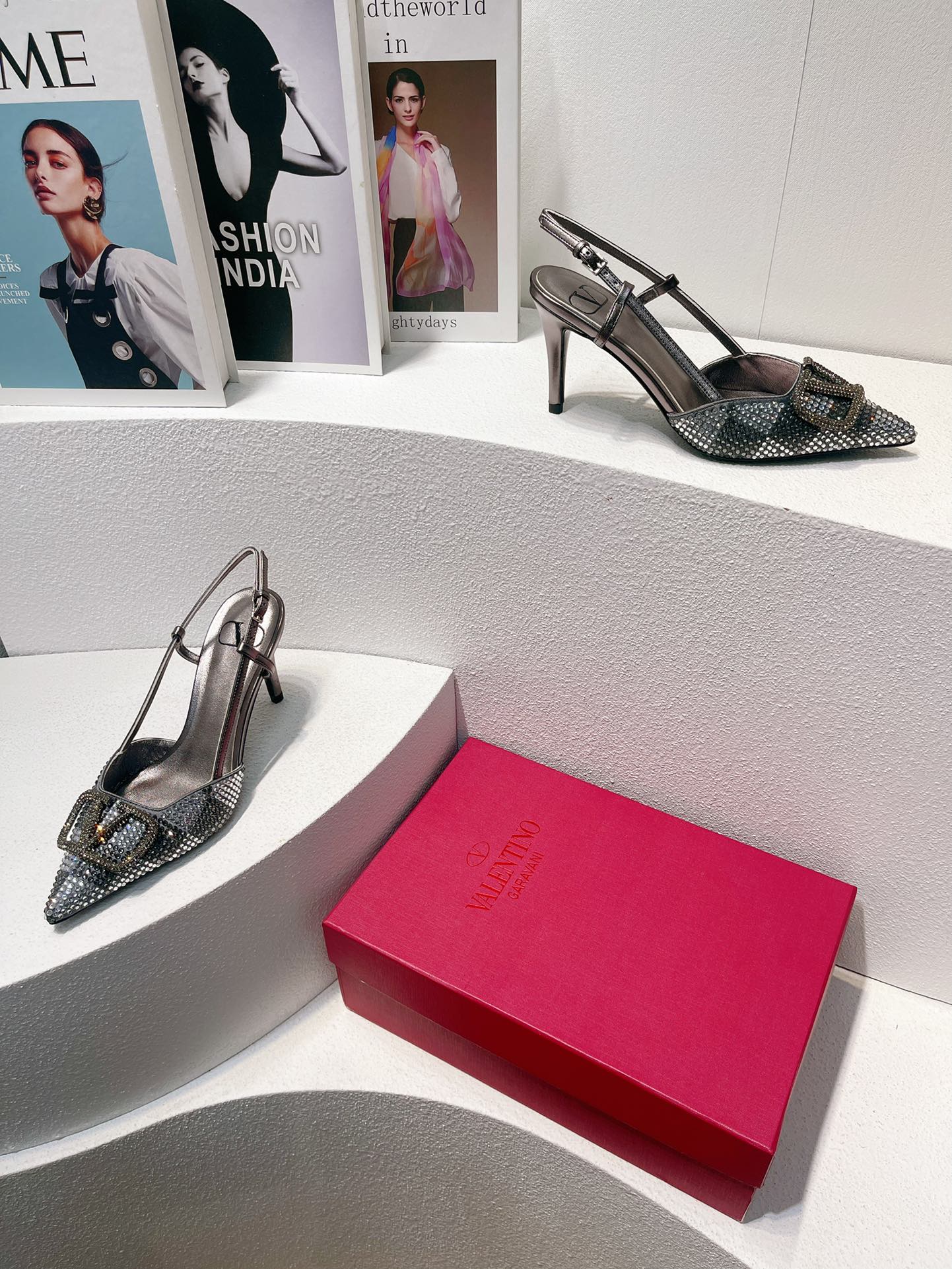 VT High Heeled Slingbacks Gray Sheepskin 292815