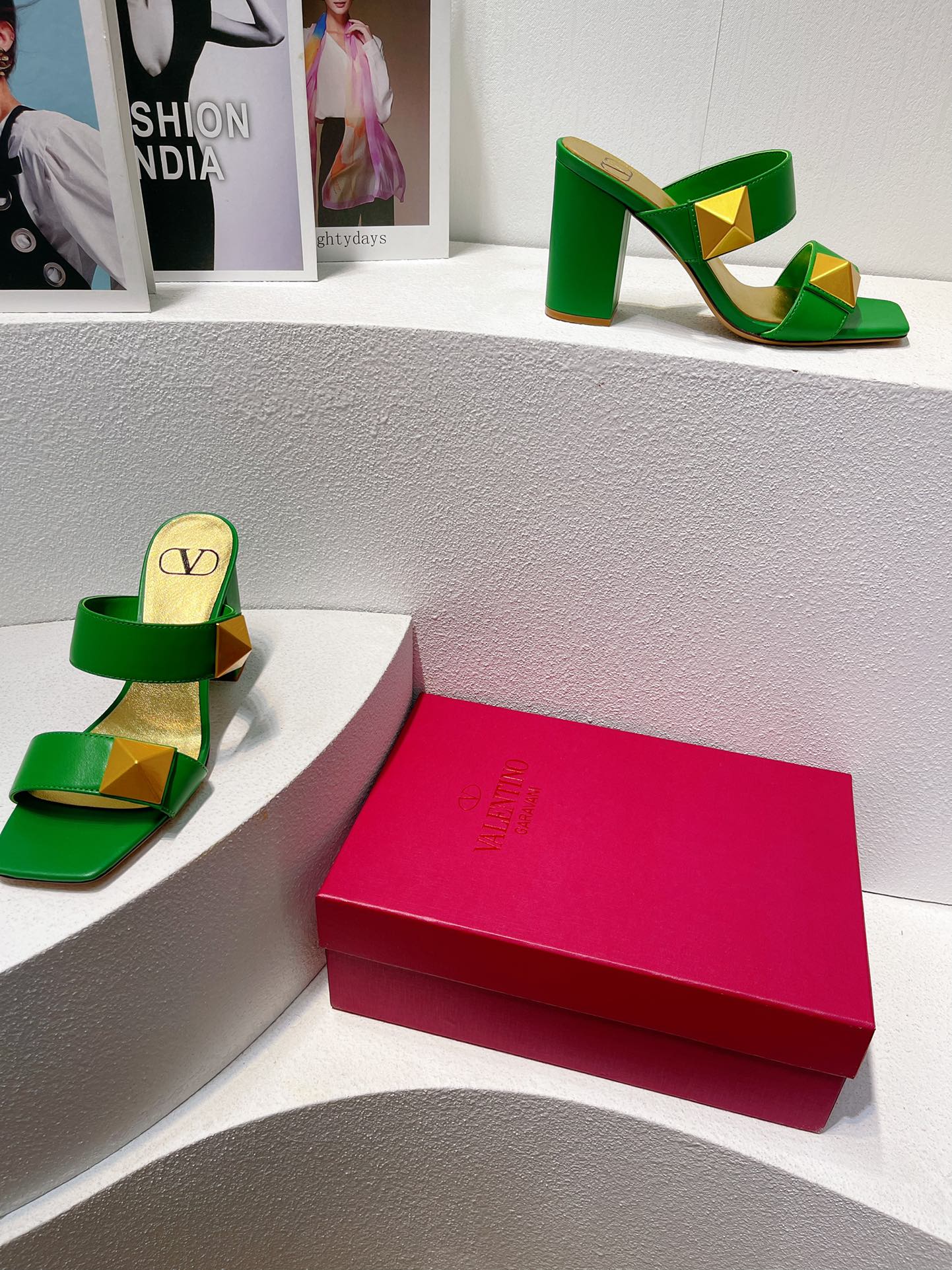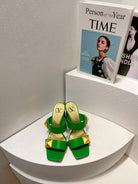 VT One Stud Leather Sandals Green Cowhide 292890