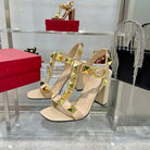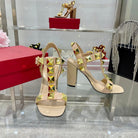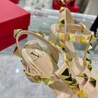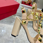 VT Rockstud Sandals Beige Gold Cowhide