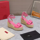 VT Wedge Platform Sandals Pink Cowhide Espadrilles