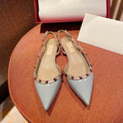 Rockstud Slingback Ballerina Flats Mist Blue Leather