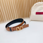 Vlogo Buckle Water Wave Gold Copper Glossy Brown Black Leather 20mm Belt