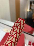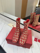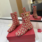 Valentino Garavani VLogo Tall Monogram Ankle Boots 30mm In Beige Mix Red Canvas Fabric 992802