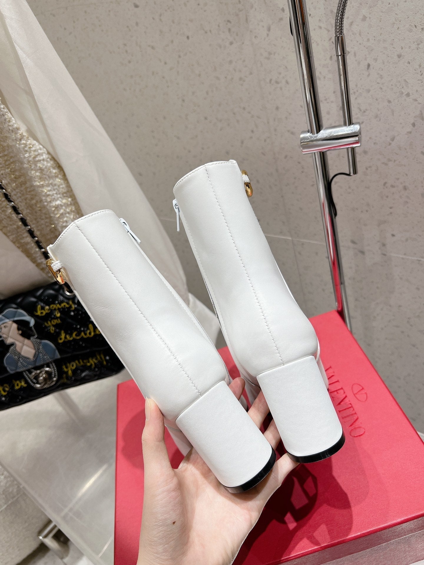 VLOGO SIGNATURE WHITE CALFSKIN ANKLE BOOT 75 MM
