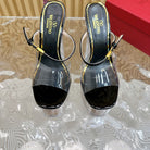 HIGH HEEL SANDAL 14CM IN BLACK CALFSKIN AND TRANSPARENT PVC