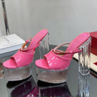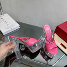 HIGH HEEL SANDAL 14CM IN BRIGHT PINK CALFSKIN AND TRANSPARENT PVC
