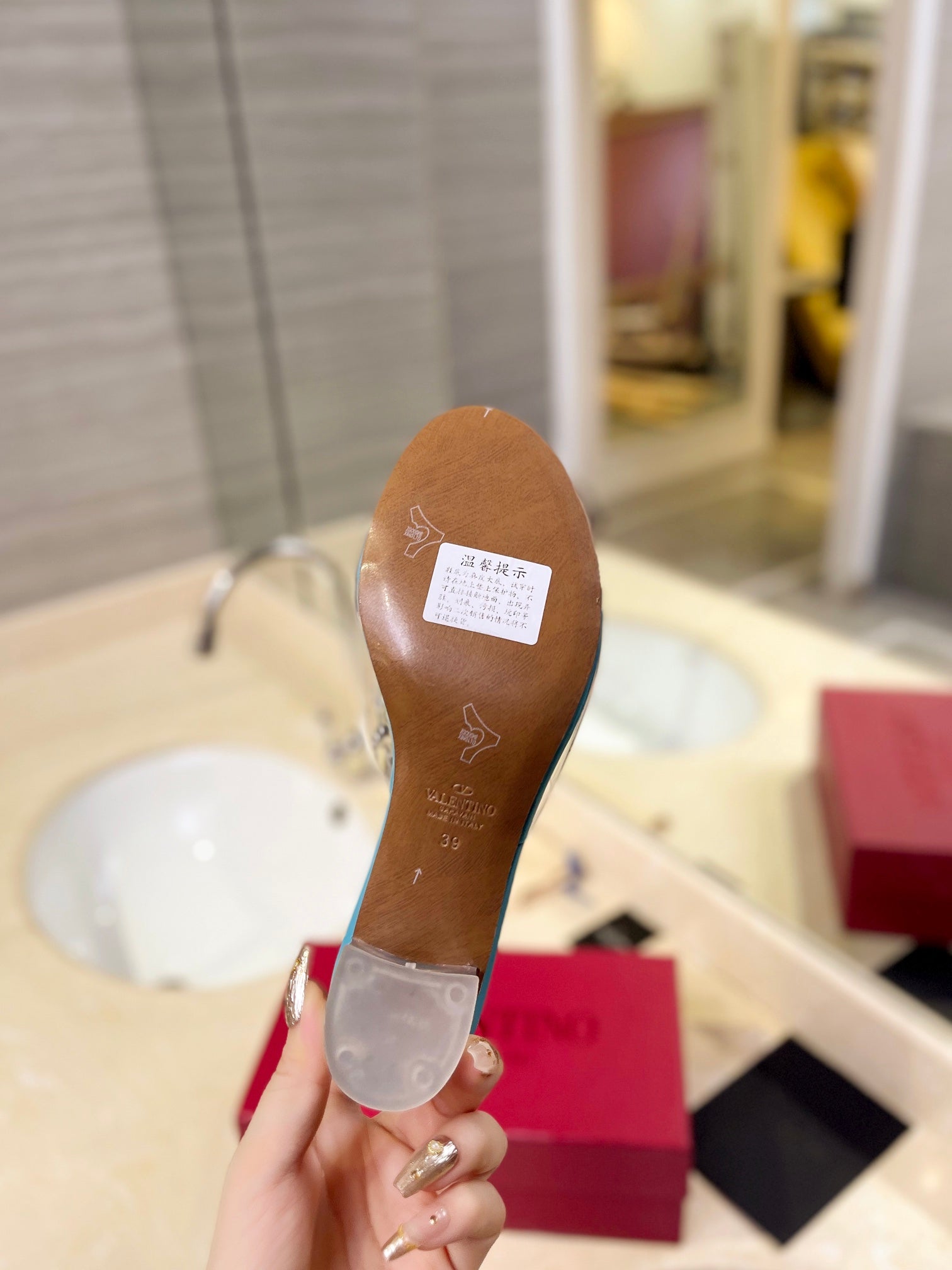 HIGH MULE 60MM IN AQUA BLUE SHEEPSKIN AND TRANSPARENT PVC