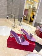 HIGH MULE 60MM IN MAUVE PURPLE SHEEPSKIN AND TRANSPARENT PVC