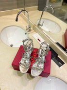 ROCKSTUD SANDAL WITH STRAP IN SILVER CALFSKIN 60 MM