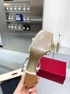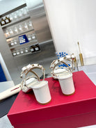 Rockstud sandals 60 with straps white beige calfskin