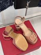 Sandal With Vlogo Signature Platform In Dark Beige Pink Glossy Calfskin 110mm 989458