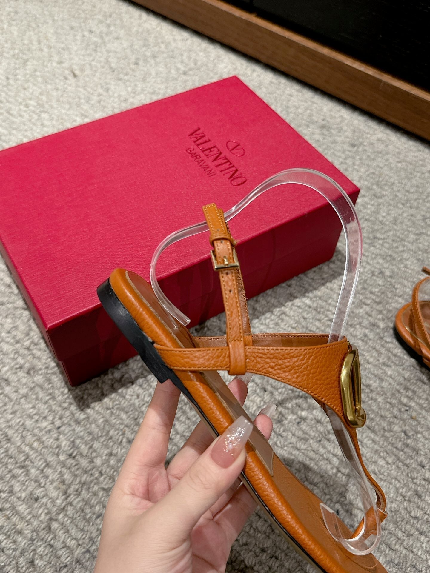 THONG SANDAL IN GINGER ORANGE CALFSKIN WITH GOLD LOGO
