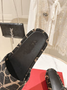 Toile Iconographe Slide Sandal 65mm Black Beige