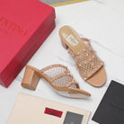WOMEN'S BLACK ROCKSTUD DESERT SAND MESH SLIDER SANDAL WITH MATCHING STUDS 65 MM