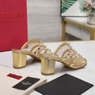 WOMEN'S BLACK ROCKSTUD GOLD MESH SLIDER SANDAL WITH MATCHING STUDS 65 MM