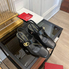 MARY-JANE VLOGO LOCKER SLINGBACK PUMPS BLACK SHEEPSKIN 60 MM