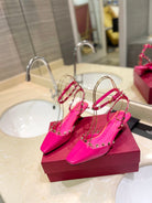 ROCKSTUD SLINGBACK IN BRIGHT PINK CALFSKIN 50MM