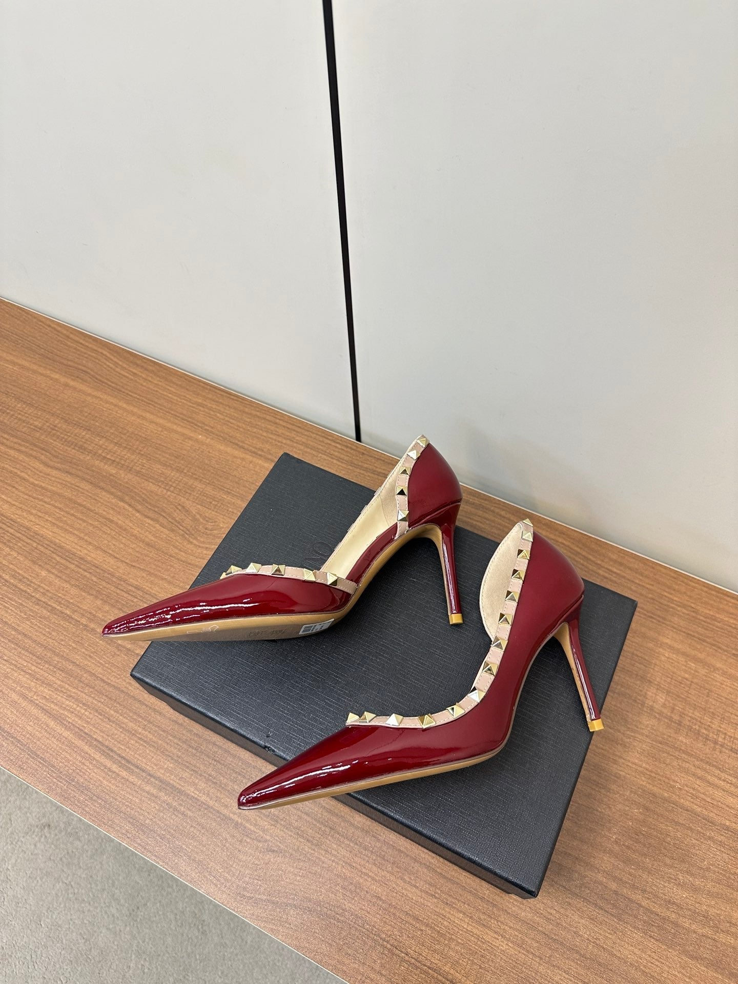 Valentino Red Rockstud D'Orsay Pumps 95mm Cowhide 989893