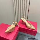 VLOGO SIGNATURE MACAROON TAN PATENT LEATHER SLINGBACK PUMP 80MM