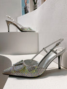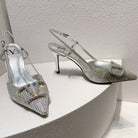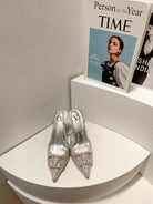VT High Heeled Slingbacks Silver Sheepskin 292823