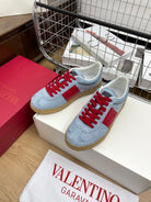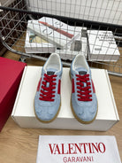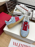 Upvillage Trainer 30mm In Blue Grey Mix Red Suede With Laminated Calfskin 990149