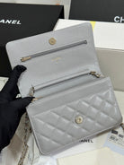 CC 25P Wallet On Chain 19cm Light Gray Cowhide Heart Rhinestone 243598