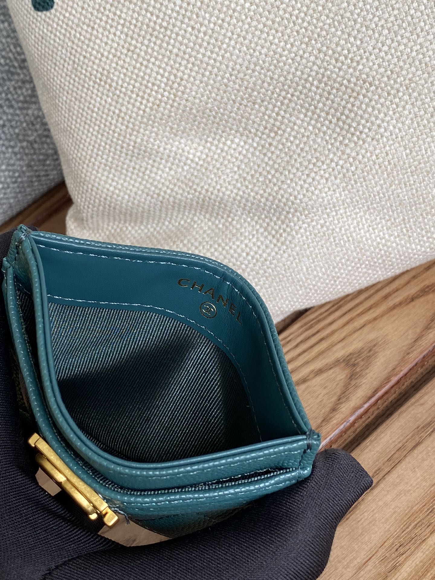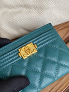 cc boy 11cm card holder dark green caviar gold hardware