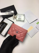CC CARD HOLDER 11.2 CORAL CALFSKIN SILVER ICON