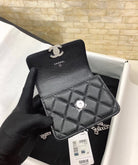 cc mini woc 13cm with top handle black quilted caviar leather silver hardware