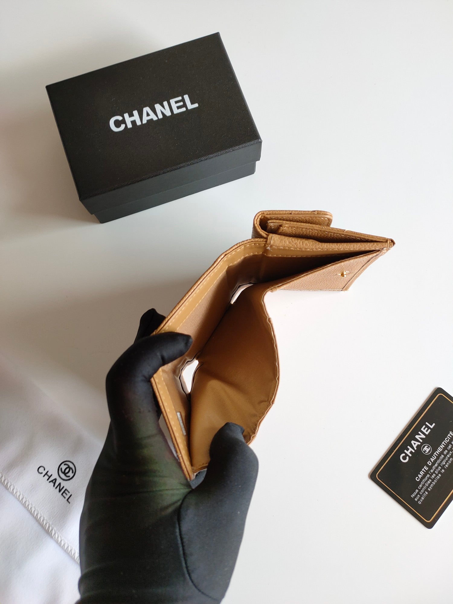CC TRIFOLD PURSE 12 AMBER GRAINED CALFSKIN GOLD ICON