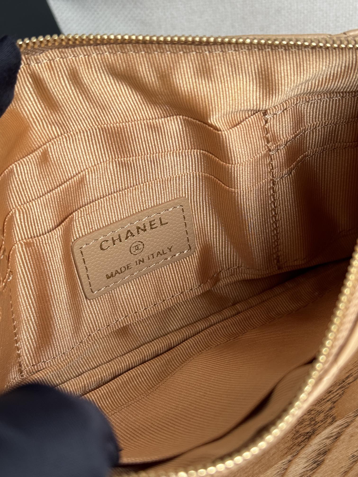 cc zipped wallet 20cm dark beige quilted caviar gold hardware