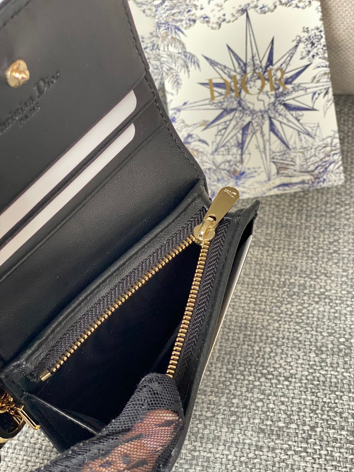 CD Caro 11cm Compact Wallet Black Calfskin