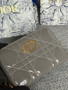 CD Logo Caro 11cm Compact Wallet Shiny Grey Calfskin