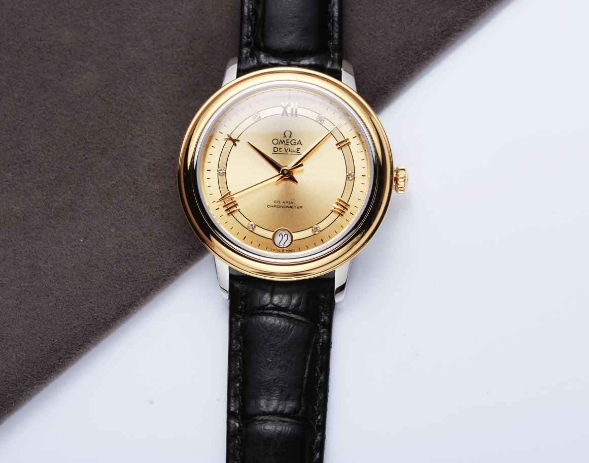 Omega De Ville 32.5mm Gold Dial Leather