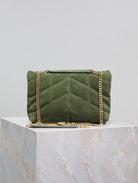 PUFFER TOY 23 IN PICKLE GREEN SUEDE GOLD HARDWARE