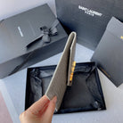 UPTOWN POUCH 27 IN PASTEL GRAY CROCODILE-EMBOSSED SHINY CALFSKIN GOLD LOGO