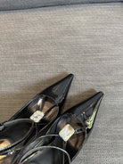 HIGH SANDAL ATTACHED GEM IN BLACK GLOSSY CALFSKIN