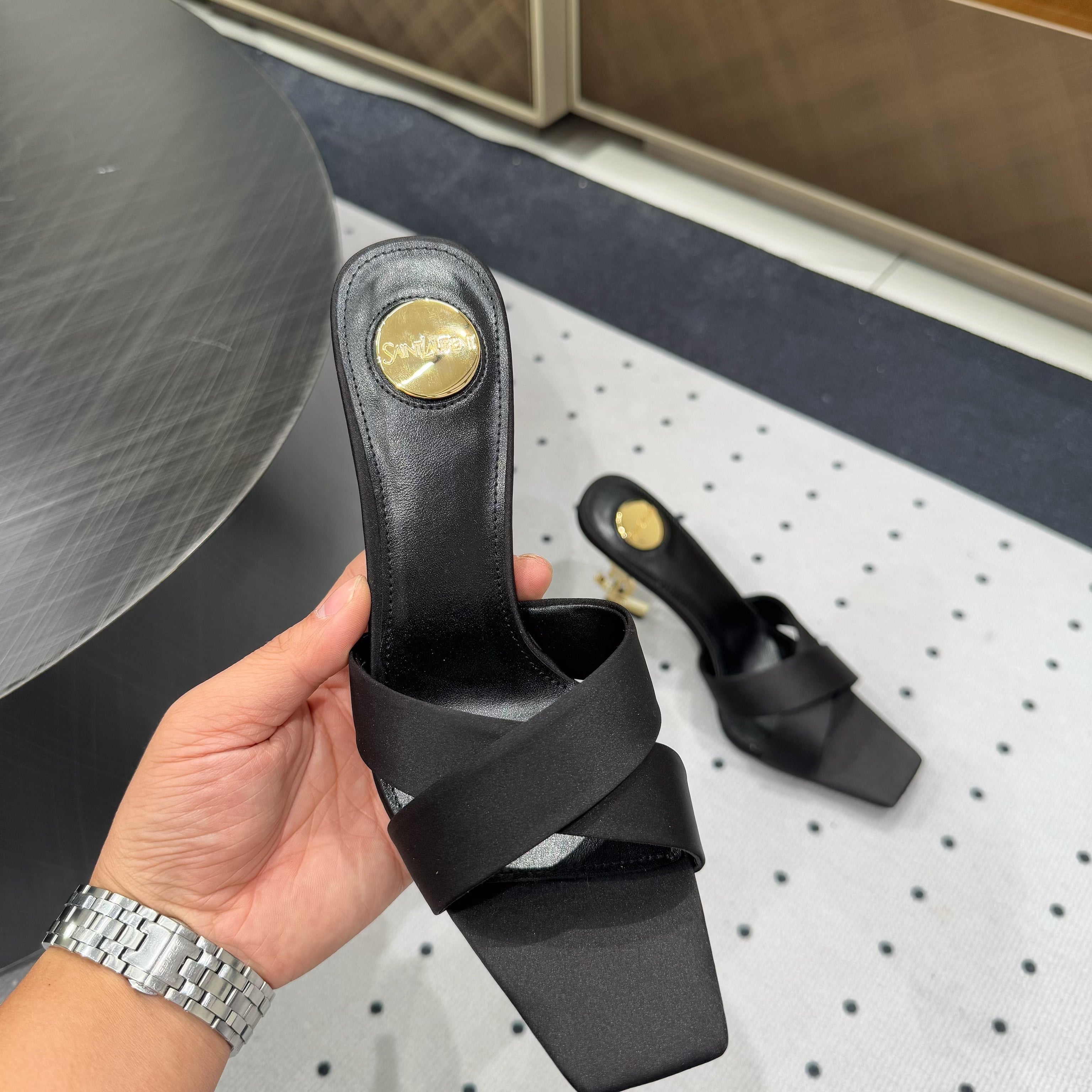 SL SEPT MULES SIENNA SATIN AND RHINESTONES