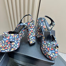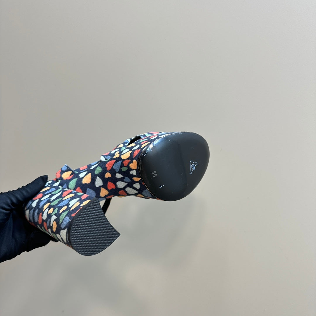 BIANCA PLATFORM SANDALS IN COLORFUL HEARTS PRINT VELVET
